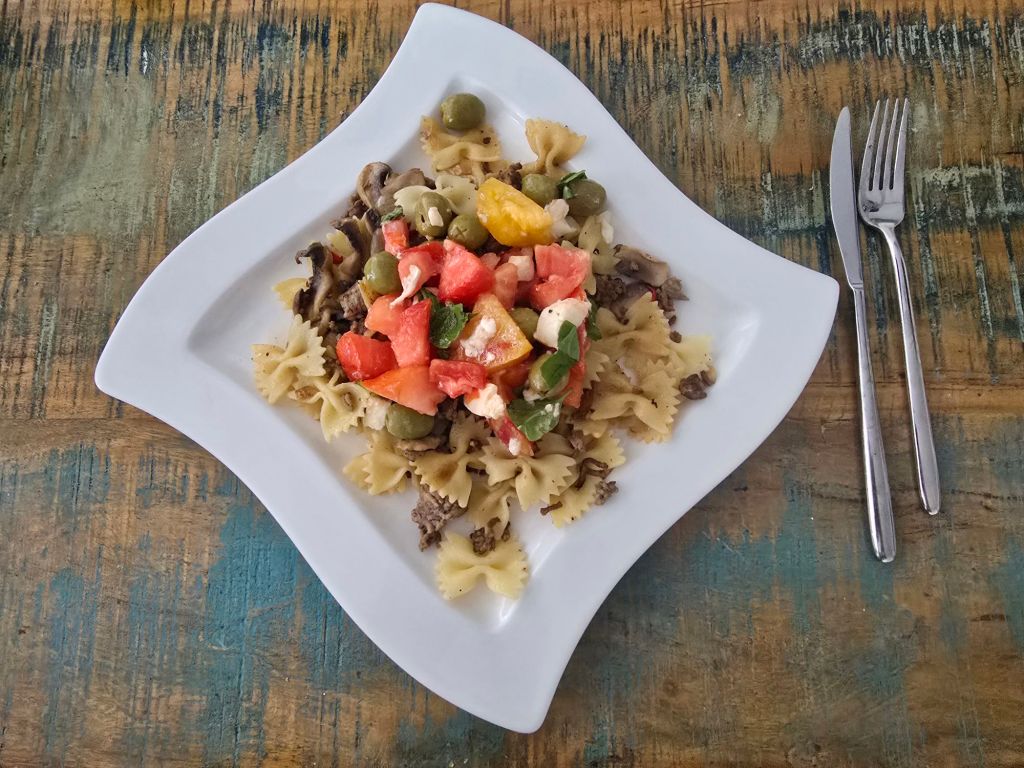 Acest preparat se poate mânca foarte bine şi rece pe post de salată de paste. O altă variantă pe care o puteţi încercă este cea cu o lingură de oţet balsamic în amestecul de roşii, măsline şi mozarella.