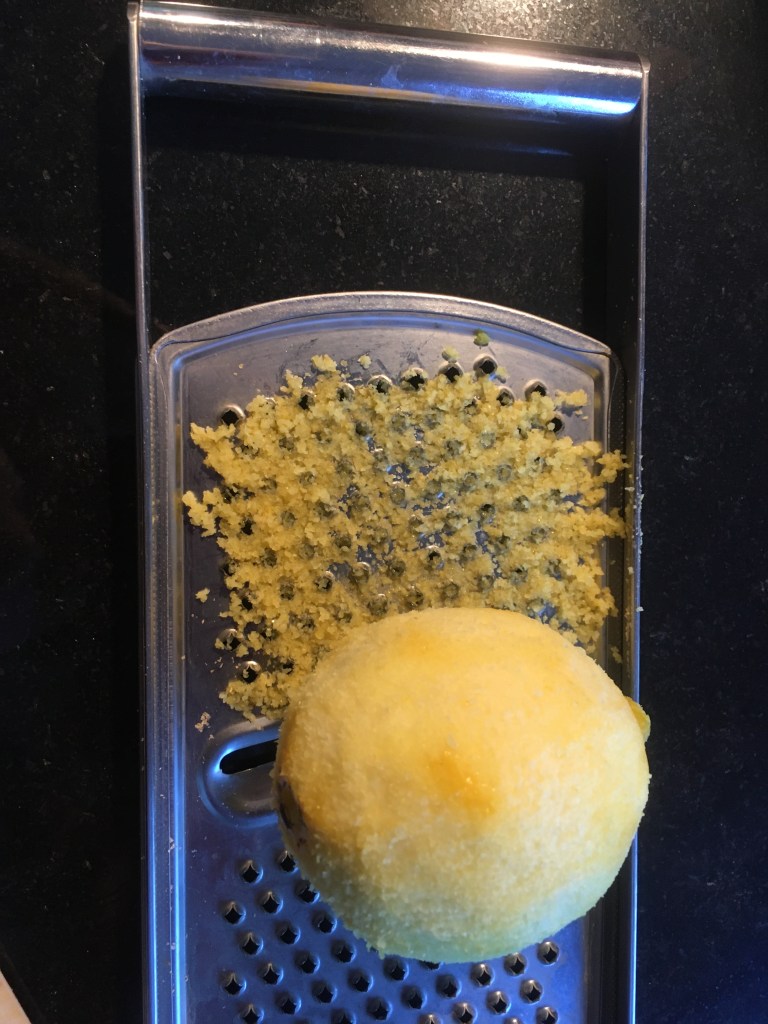 Se filetează grepfrutul. Există multe clipuri pe net care demonstrează cum se face această operaţiune şi dacă nu aţi mai facut-o niciodată v-aş recomanda să urmăriţi un astfel de clip, deşi nu e mare lucru şi sigur vă va ieşi din prima. Pe scurt, se taie un capac din partea superioară a fructului până se ajunge la miez şi încă unul simetric din partea inferioară, în aşa fel încât fructul să poată sta pe o suprafaţă plană. Apoi se poziţionează cuţitul pe marginea superioară şi se taie până la miez urmând curbura naturală a grepfrutului şi mergând până jos. Obiectivul după aceste două prime etape este să nu mai rămână pieliţe albe decât în interiorul fructului, separând feliile, dar nu şi la exterior (de aceea se taie până la miez, ştiut fiind că pieliţele grepfrutului sunt amare). În fine, am ajuns la faza în care se scot fileurile de grepfrut tăind cât mai aproape de pieliţa despărţitoare albă de o parte şi de cealaltă a fiecărei felii, deci câte două tăieturi de file. Rămâne destul miez ataşat de pieliţe după ce au fost scoase toate fileurile, eu storc acest rest tot in vinegreta pentru salată, dar la fel de bine ar putea merge şi într-un pahar pentru a fi consumat separat. Ar fi mare păcat să aruncăm sucul acesta de grepfruit.