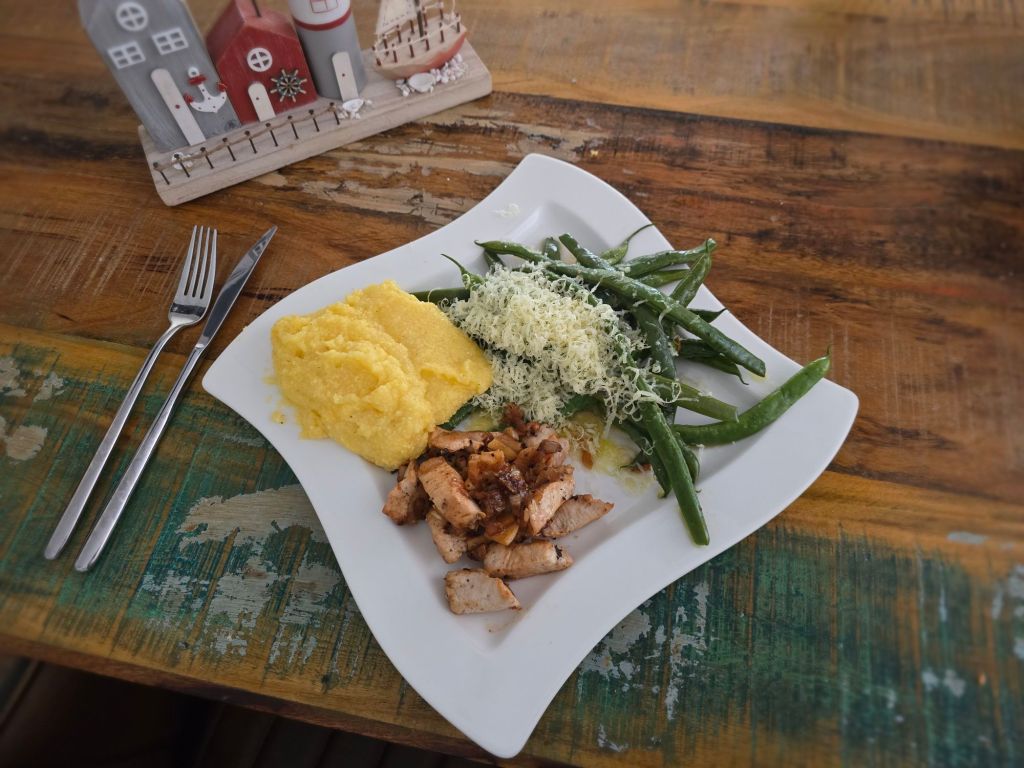 Se serveşte în aşa fel încât toate straturile să ajungă pe farfurie, alături de o lingură sau două de iaurt grecesc sau de o salată.